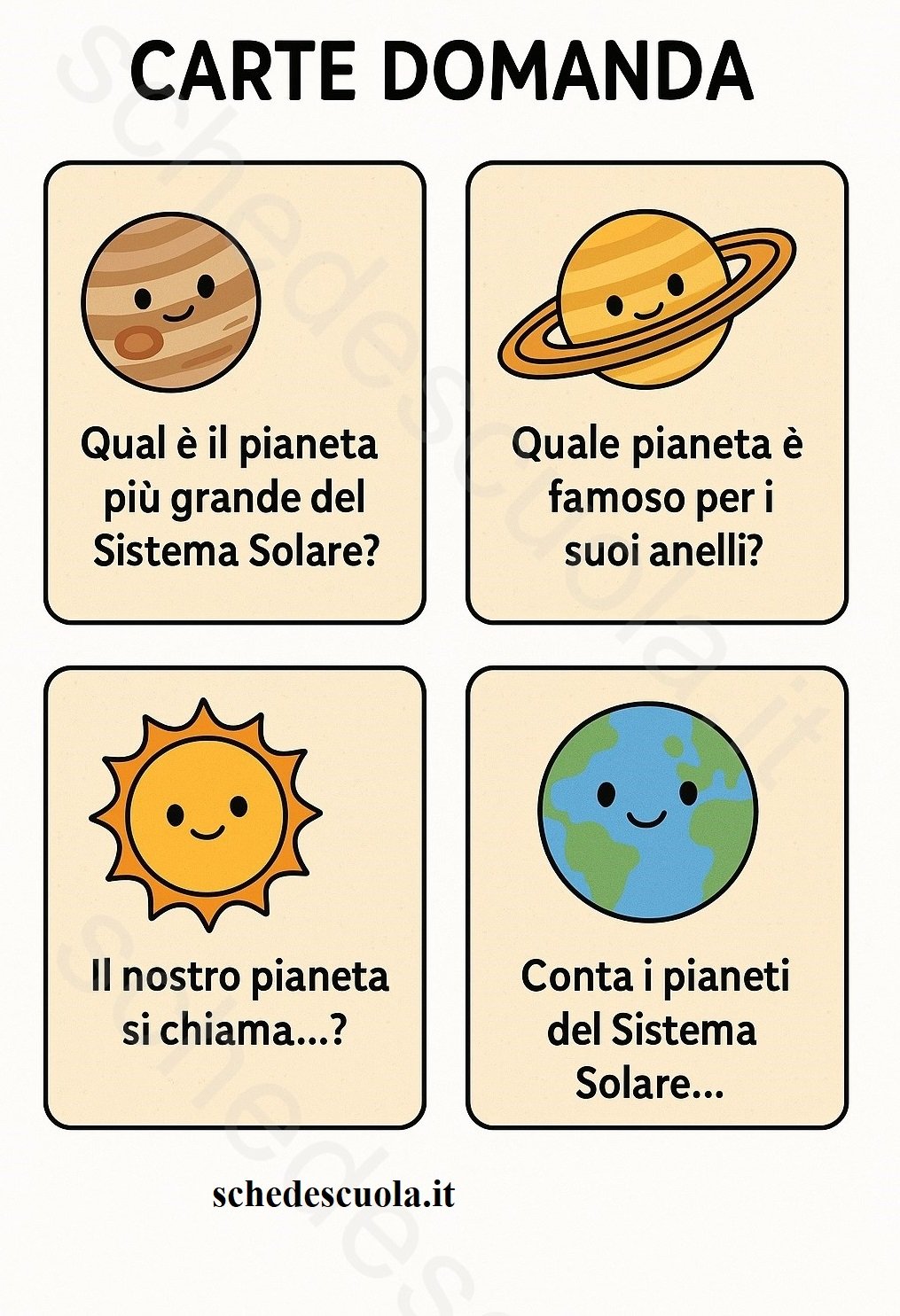 Sei pronto per una sfida intergalattica? Metti alla prova la tua conoscenza con un divertentissimo gioco dell’oca in versione spaziale! Sarà un’occasione perfetta per ripassare nomi di stelle, pianeti e costellazioni, e per rivivere le avventure che hai letto. Ogni casella ti riserverà una sorpresa, un quiz o una curiosità, trasformando il ripasso in un’emozionante corsa verso la vittoria. Prepara i dadi e le tue pedine-astronave, il divertimento è assicurato!