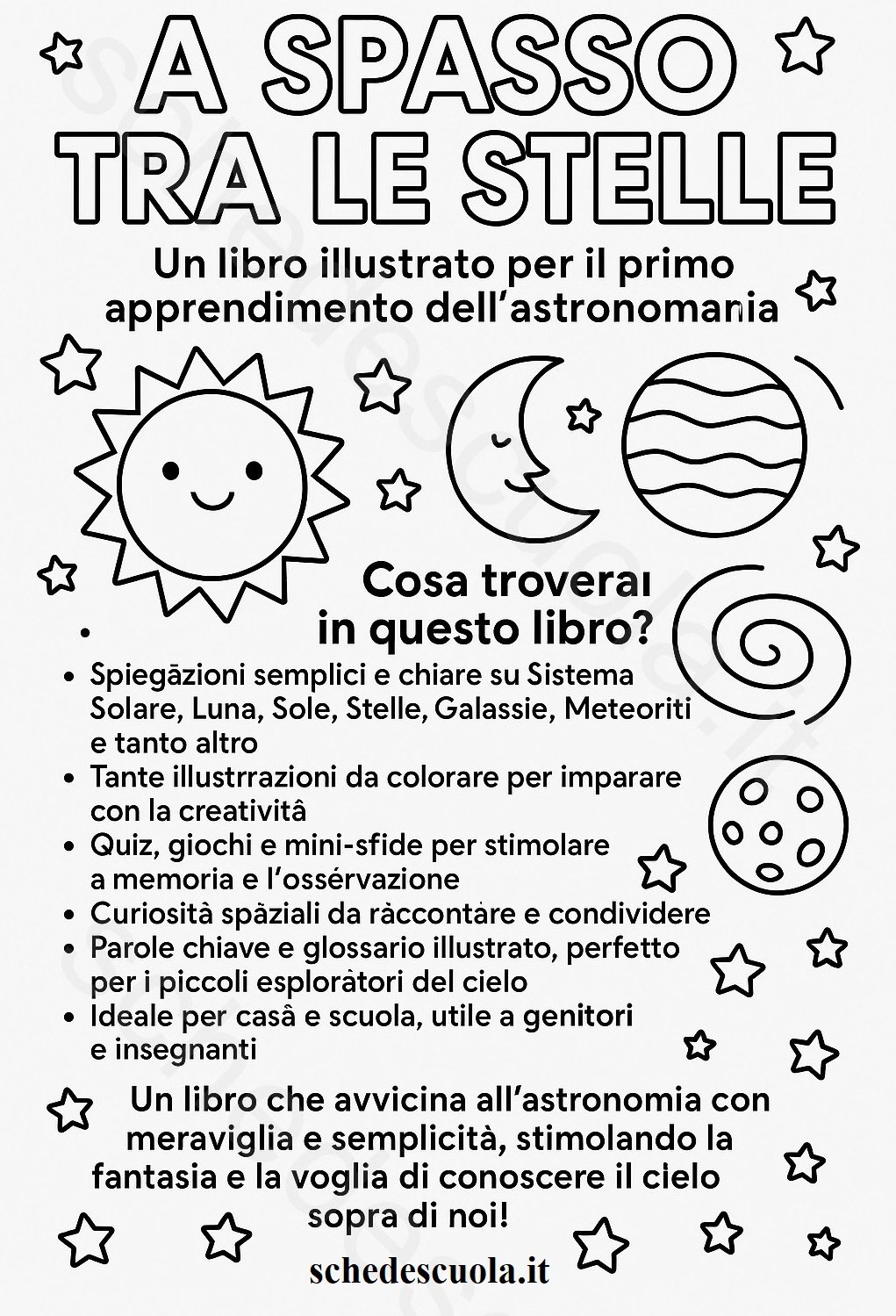 Ecco l’articolo “A spasso tra le stelle” che introduce il libro per bambini che risponde alle prime grandi domande dei piccoli curiosi con testi chiari, illustrazioni da colorare e attività stimolanti che rendono l’apprendimento un vero gioco spaziale!