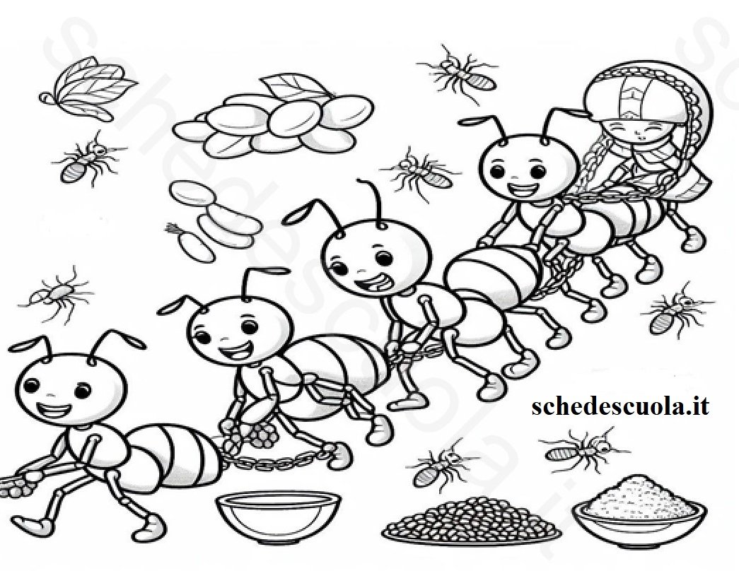 Quando una formica trova cibo, utilizza le sue zampette forti per trasportarlo fino al formicaio. Lungo il percorso, altre formiche si uniscono a lei, creando una catena di piccoli lavoratori che trasportano il cibo in modo ordinato e veloce. È come se organizzassero una piccola marcia del cibo!